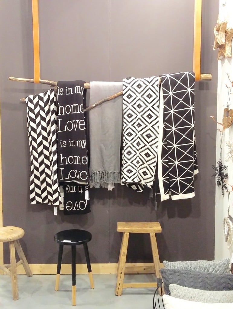 Sur les stands régnaient une ambiance très cosy, cocon. Une ambiance chaleureuse grâce aux plaids et aux peaux de bêtes (en fausse peaux de bêtes).
